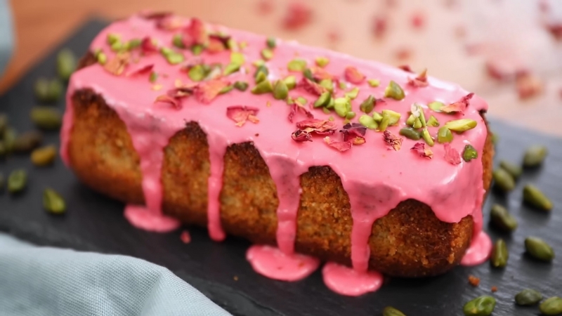 - Glaze & GarnishMix powdered sugar with milk and a little rosewater to make a pourable glaze. Drizzle over the warm cake and finish with chopped pistachios and dried rose petals, if desired.